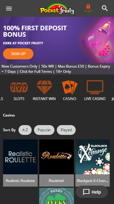 標準的なカジノ ゲームに加えて、Pocket Fruity では完全なライブ ディーラー カジノも顧客に提供しています。