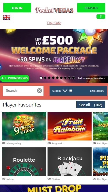 Pocket Vegas Casino は、英国の管轄区域を通じてゲーム運営を行うライセンスを取得しています。