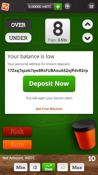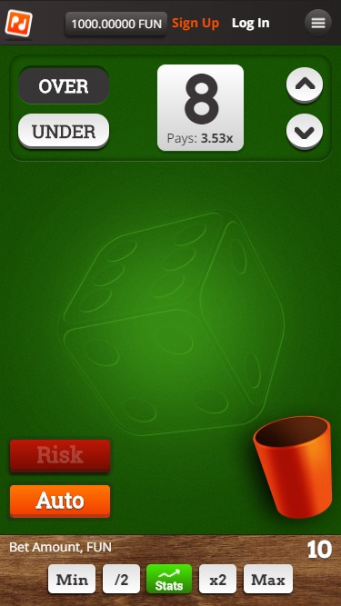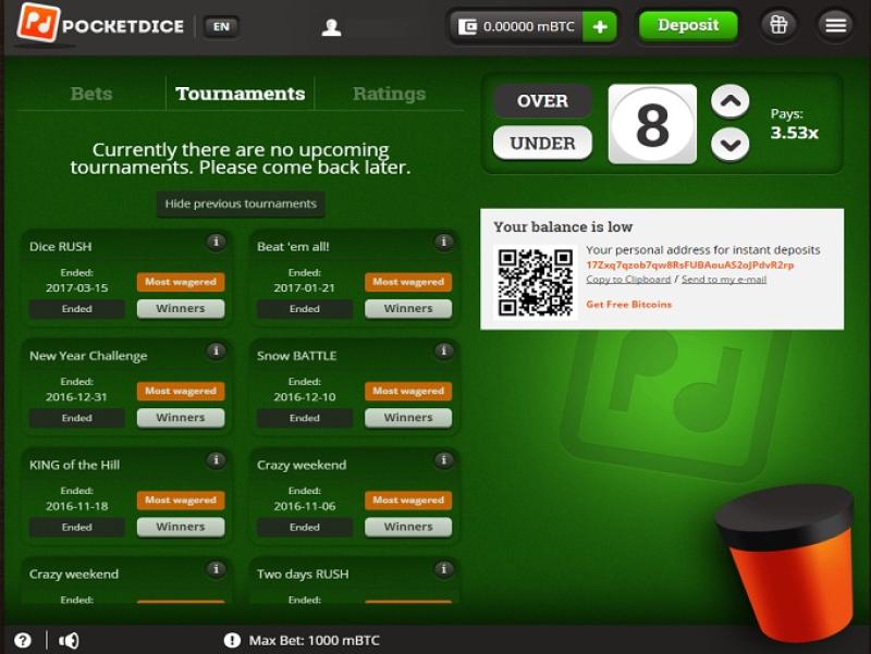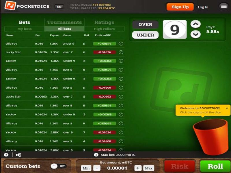 PocketDiceはビットコインを利用したオンラインベッティングサイトです。プレイヤーは、2つのサイコロを振って選んだ数字のオーバー/アンダーに賭けることができます。サイトのレイアウトは非常にシンプルで、サイコロを振るゲームのみを提供していますが、勝者には即座に賞金が支払われます。PocketDiceはどの管轄区域でも規制されていないため、このビットコインゲームを試すプレイヤーは注意が必要です。カジノ情報