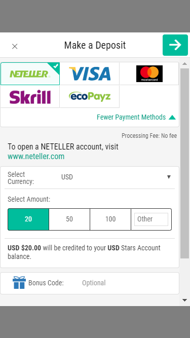 PokerStarsのバンキングシステムは優れており、カジノは非常に迅速な出金・入金サービスを提供しています。プレイヤーはクレジットカード、eWallet、PayPalで入金でき、出金はeWallet、小切手、電信送金で可能です。