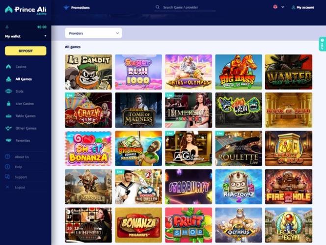 PrinceAliには、業界の大手企業が名を連ねるゲームサプライヤーリストがあります。大手企業との提携により、最高水準のコンテンツと多様なゲームジャンルが保証されます。