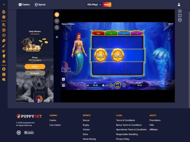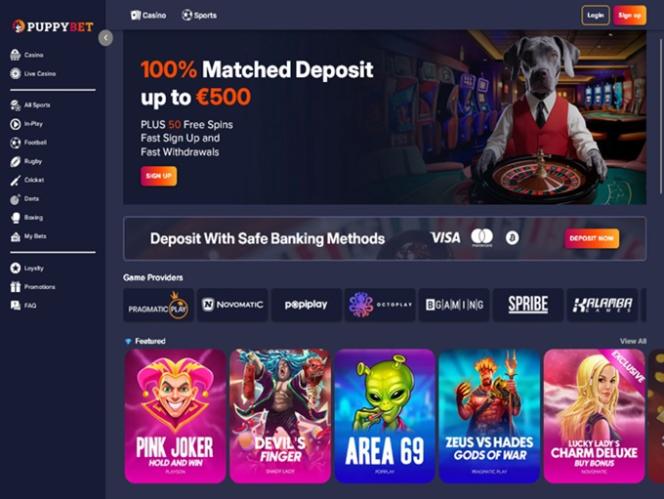 ブランド名からも想像できる通り、このカジノは子犬と犬をテーマにしており、ウェブサイトに個性とセンスが溢れています。特に、オリジナルのアートワークやビデオエフェクトが豊富に用意されていることを考えると、その魅力はさらに際立っています。ユーザーインターフェースは操作しやすく、プレイヤーはすべてのページやセクションに問題なくアクセスできます。
