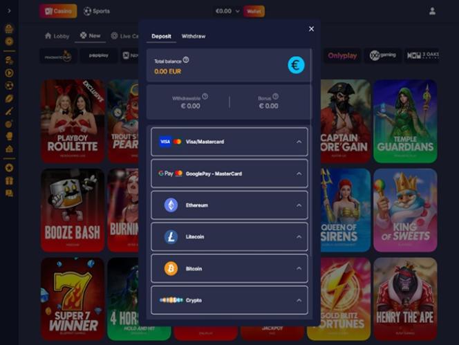 このオンラインカジノは、魅力的な外観に加え、プレイヤーが楽しめるゲームラインナップも豊富です。リアルマネースロット、テーブルゲーム、クラッシュゲーム、ライブディーラーなど、どんなゲームがお好みでも、豊富な選択肢とバリエーションの中からお選びいただけます。