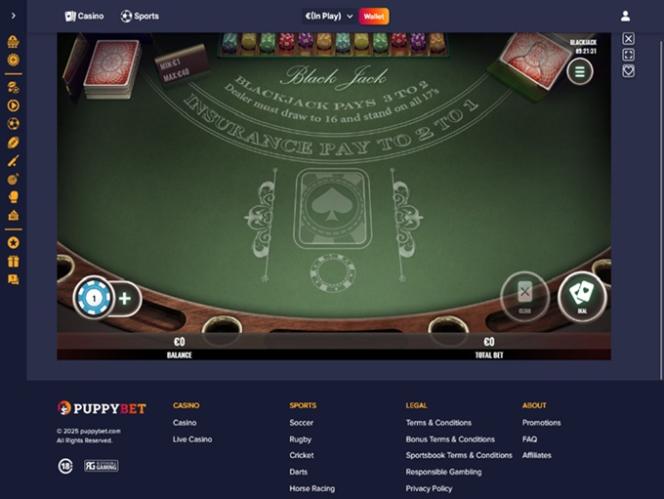 オンライン スロットを十分にプレイした後で、もう少し複雑なゲームを探している場合は、PuppyBet のポーカー、ルーレット、ブラックジャック、バカラなどの伝統的なテーブル ゲームをぜひプレイしてみてください。これらのゲームは、ライブ ディーラー形式とコンピューター形式の両方でプレイでき、最も人気のあるバリエーションは、グランド ボーナス ブラックジャック、ハイパー スピード バカラ、ロイヤル ルーレット、ポーカー 6+ です。