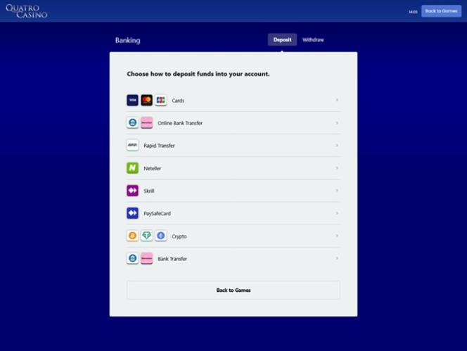 Quatro Casino 同様にホームです 43以下にリストされているその他のゲーム: