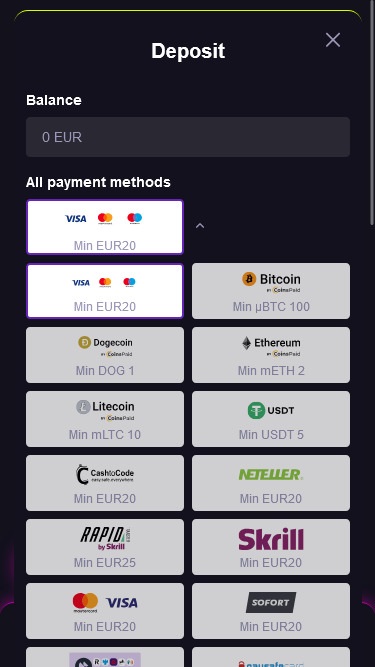 出金限度額については、週ごとの出金限度額は平均を上回っていますが、月ごとの出金限度額は平均をわずかに下回っています。15,000ユーロを超える金額は、VIP会員を除き、月ごとに分割払いで出金されます。プログレッシブジャックポットの当選金はすべて全額出金されます。いかなる取引にも手数料はかからず、処理時間は即時です。