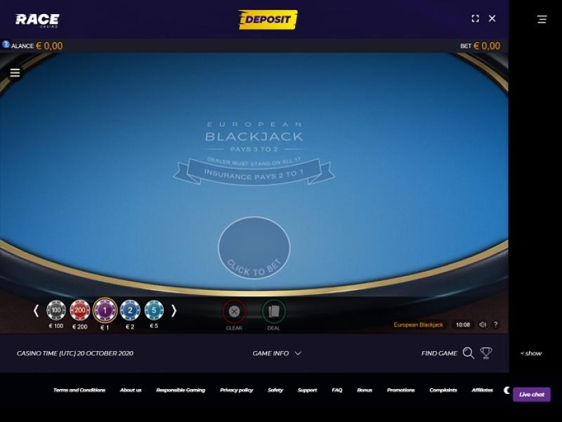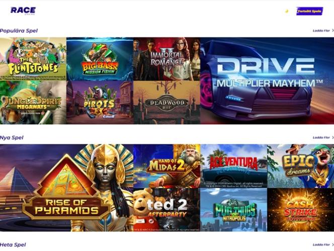 Race Casinoは Microgaming, Net Entertainment, 1x2gaming, Barcrest, Big Time Gaming, ELK Studios, Evolution Gaming, EYECON, lightningboxgames, Novomatic, Play'n GO, Rabcat, Relax Gaming, Thunderkick, Stakelogic, Pragmatic Play, Nolimit City, Red Tiger Gaming, Spinomenal, Fantasma Games, Triple Edge Studios, Northern Lights Gaming, Stormcraft Studios, Switch Studios, All41 Studios, Gameburger Studios, Pulse 8 Studios, Neon Valley Studios, Shuffle Master, SpinPlay Games, Buck Stakes Entertainment, Games Global, Bally Technologies, Blueprint Gaming, Greentube, Leander Games, Merkur Gaming, NextGen, NYX Interactive, WMS, Inspired Gaming, Gaming Realms, SG Interactive, Red7Mobile, Scientific Games, Reel Time Gaming, Iron Dog Studio, Old Skool Studios, Foxium, Betdigital, Just For The Win, Wild Streak Gaming, Slingshot Studios, Fortune Factory Studios, 4ThePlayer, AvatarUX, Crazy Tooth Studio, High 5 Games, ReelPlay, Alchemy Gaming, Black Pudding Games, Snowborn Games, Hacksaw Gaming, Eurostar Studios, Aurum Signature Studios, Lucksome Gaming, Circular Arrow, Print Studios, Nailed It! Games, Reel Kingdom and Light & Wonderによって運営されており、デスクトップまたはモバイルデバイスからご利用いただけます。サイトは魅力的で操作も簡単で、登録も簡単でしたので、わずか数分で利用を開始できました。Blackjack