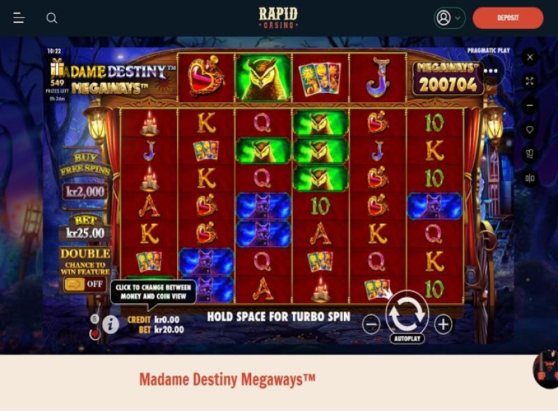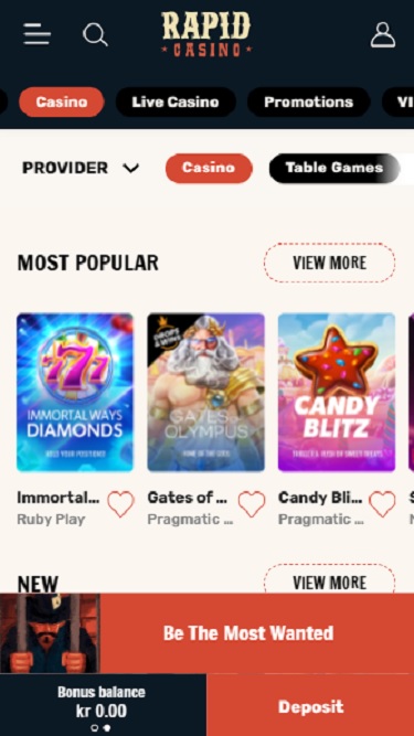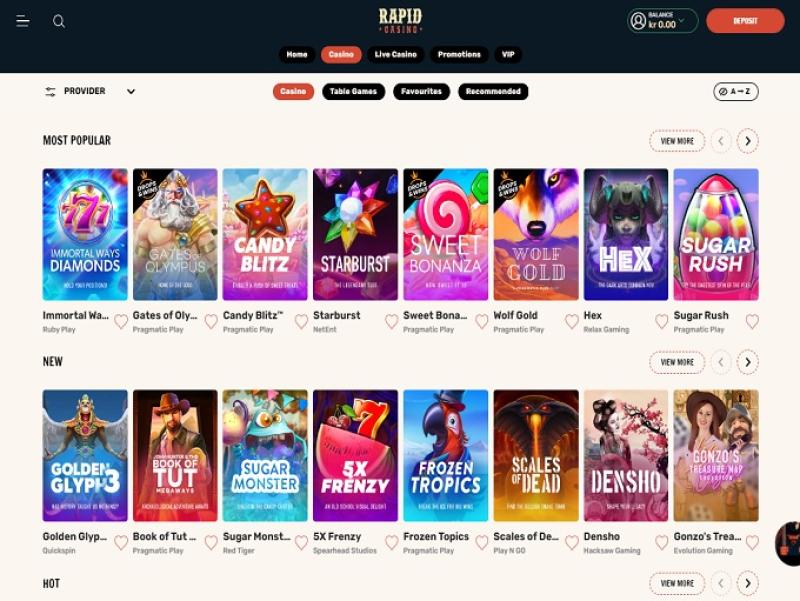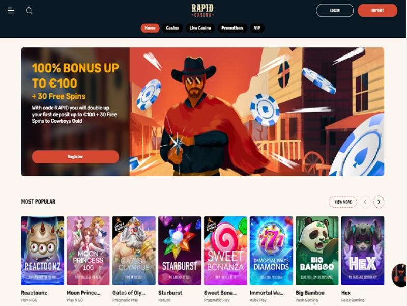Rapid のスロット ライブラリに収録されているスロット タイトルの一部は次のとおりです: Wanted Dead or a Wild、Treasure Wild、9 Happy Pharaohs、Heroes Hunt 2、Charlie Chance and the Curse of Cleopatra、Dead Man's Trail、Starlight Princess、Bonanza、Extra Chilli、Starburst XXXtreme、Gold Hunter、Fruit Party、Book of Dead、Chip Spin...