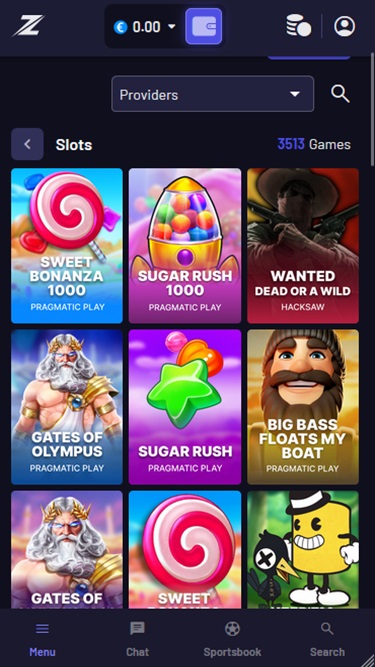 プレイヤーはサイト左側の縦型メニューから、カスタマーサポートチャット、イベント、VIPクラブ、ヘルプセンターにアクセスできます。また、カジノやスポーツなど、お好みのギャンブルの種類を選択することもできます。選択すると、すべての製品カテゴリーとジャンルが掲載された専用ページに移動します。
