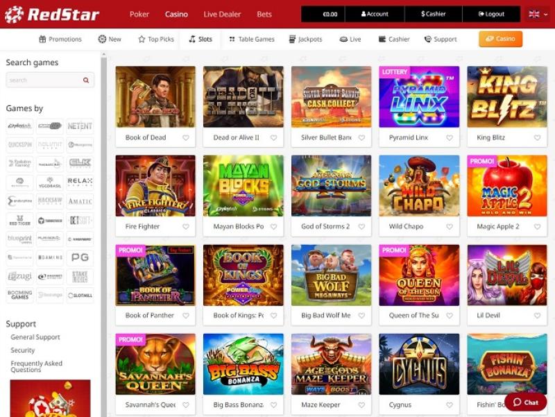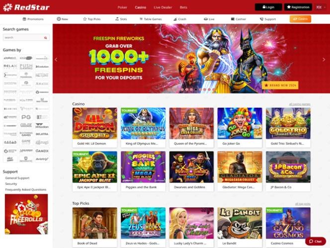 RedStar Casino では、標準的なカジノ ゲームに加えて、ライブ ディーラー、ポーカー、ファンタジー スポーツ サービスもプレイヤーに提供しています。