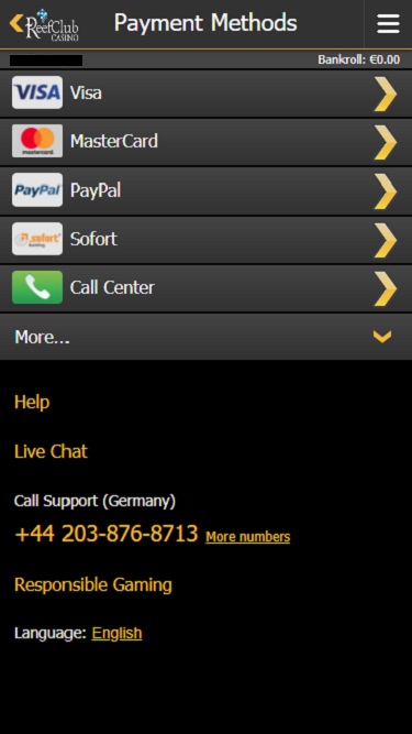 での銀行オプション ReefClub Casino