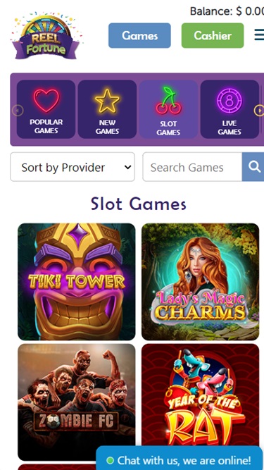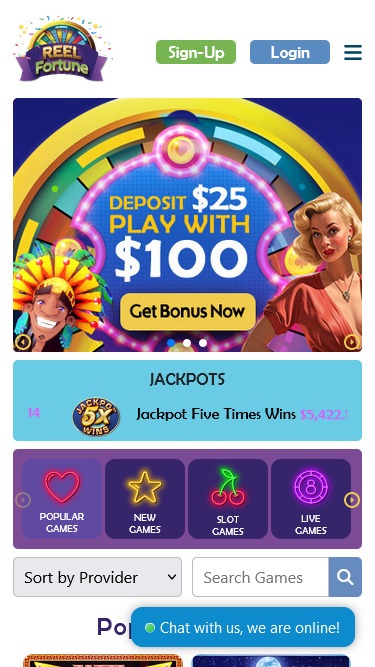 カジノの主なカテゴリーは「プロモーション」「バンキング」「リワード」で、カジノゲームセクションには「人気ゲーム」「新着ゲーム」「スロットゲーム」「ライブゲーム」「テーブルゲーム」「ビデオポーカー」「クラッシュゲーム」「ジャックポットゲーム」「全ゲーム」があります。ブラウジングオプションも用意されているので、ゲーム名やプロバイダーでお気に入りのカジノゲームを見つけることができます。Reel Fortuneはまさにプレイヤー中心のカジノで、すべてが分かりやすく整理されています。