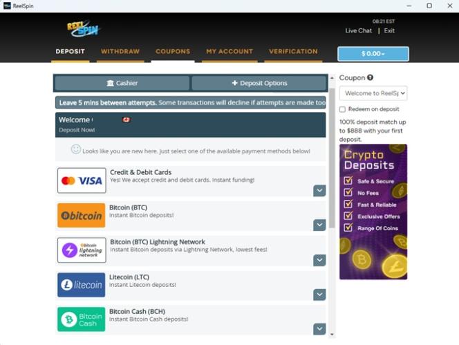 Reel Spin Casinoは Real Time Gamingを採用しており、ゲームはインスタントプレイのウェブベースのプラットフォームを通じて提供されるため、面倒なソフトウェアをコンピューターにダウンロードする必要はありません。モバイルプレイにも対応しており、スマートフォンやタブレットからゲームをプレイできます。