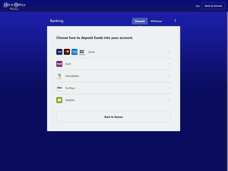 Rich Reels Casino は、カナワケおよび英国の管轄区域を通じてゲーム運営を行うライセンスを取得しています。サポートされていない国