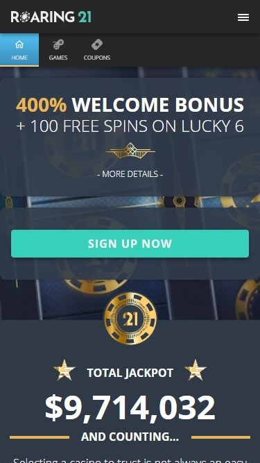 Roaring 21は、アメリカのプレイヤーが利用できるオンラインベッティングサイトで、2018年にオープンしました。RTGソフトウェアを採用しており、非常に優れたCasino Maxの姉妹サイトです。私たちは過去にカジノ運営グループであるEntertainment Software Group NVと提携したことがあり、彼らはプロフェッショナルな対応をしつつ、賞金の払い戻しも比較的迅速に行ってくれると感じています。Casino Maxの高い基準はRoaring 21にも反映されており、新しいカジノをお探しならRoaring 21を強くお勧めします。