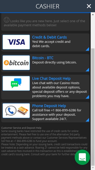 Roaring 21は Real Time Gaming, Visionary iGaming and Spinlogic Gamingを採用しており、カジノのゲームはインターネットブラウザで読み込まれるウェブベースのプラットフォームを通じて提供されます。このサイトでは、多くのRTG対応カジノで見られるダウンロード型のソフトウェアではなく、洗練されたブラウザプラットフォームを採用しており、これは良い点です。モバイルプレイにも対応しているため、外出先でもプレイできます。