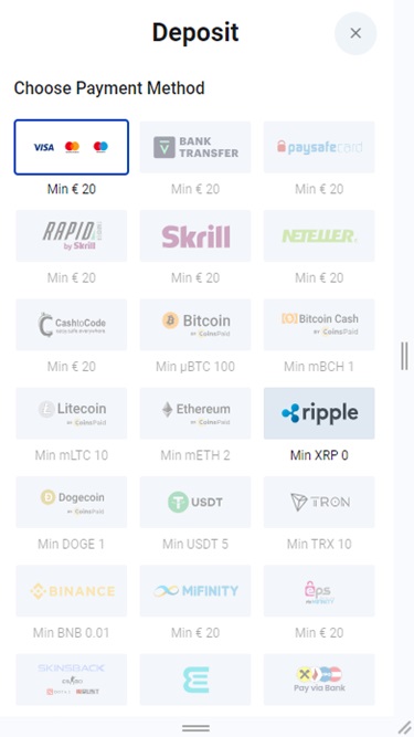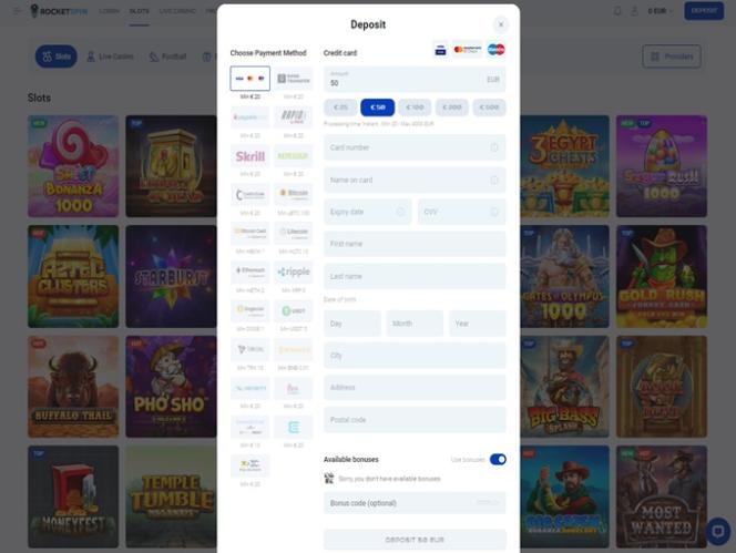 カジノブランドがアクセシビリティを高めるもう一つの簡単な方法は、複数の決済方法を提供することです。RocketSpin Casinoはこの点を理解しており、プレイヤーはVisa 、 Mastercard 、 Astropay 、 Neosurf 、 MiFinity 、 Paysafecardといった従来の銀行決済オプションを利用できます。また、ビットコイン、ビットコインキャッシュ、カルダノ、イーサリアム、ドージコイン、ライトコイン、テザー、トロン、リップルといった最新の仮想通貨による入出金方法も利用できます。