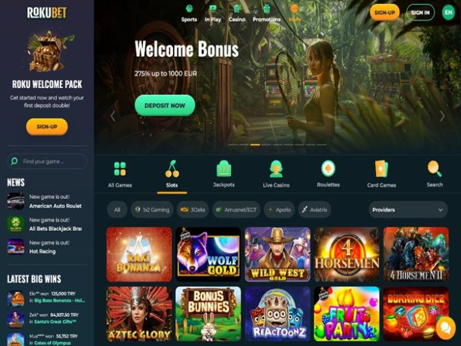 Roku Casinoは、キュラソー島のAbudantia BVが運営するオンラインベッティングサイトです。インドとトルコのプレイヤーを対象としており、ライブディーラーゲーム、テーブルゲーム、そして複数のオンラインスロットを豊富に提供しています。このサイトは仮想通貨に対応しており、これらの国でプレイしたい方にとって最適な選択肢です。カジノ情報