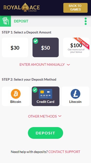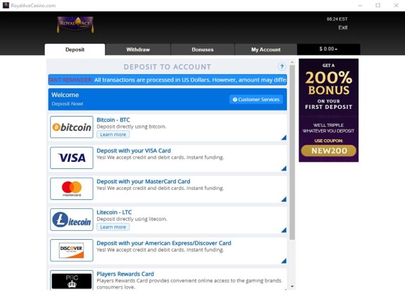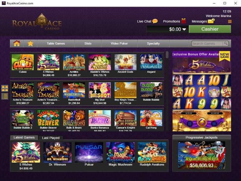 Royal Ace Casino は Real Time Gaming and Spinlogic Gamingによって運営されており、プレイヤーはダウンロード可能なソフトウェアや Web ベースのプラットフォームを通じてゲームをプレイすることができます。