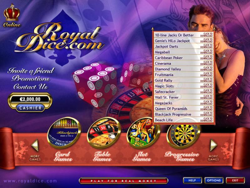 Royal Dice Casino は Playtechによって提供されており、ダウンロード可能なソフトウェアとカジノの Web サイトからアクセスできるインスタント プレイ モデルの両方でプレイできます。Blackjack