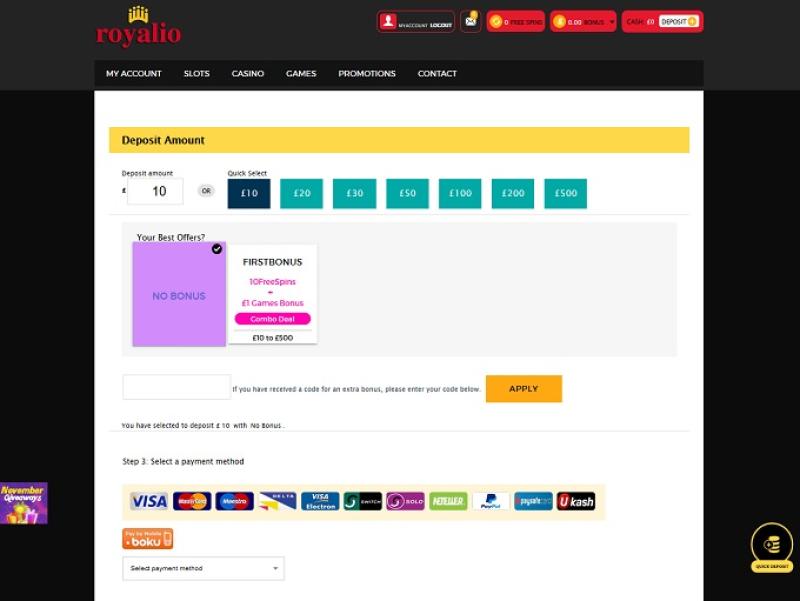 Royalio Casinoの利用規約をよく見ると、プレイヤーに対する搾取的または不公平な規定は見当たりません。文言は他の合法的なオンラインカジノとほぼ同じです。Royalio Casinoの決済手段は非常に充実しており、Solo、Visa、Neteller、Maestroでの入出金が可能です。入金はBoku、MasterCard、Paysafecard、小切手でも可能で、出金は小切手でも行えます。出金時間は比較的早く、1~2日で完了します。ただし、週当たり1,500ポンド、月当たり3,000ポンドの出金限度額があることに注意してください。