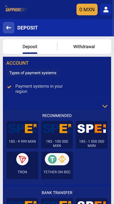 での銀行オプション Sapphirebet Casino