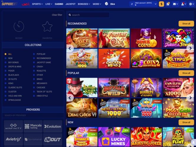 Sapphirebetカジノは、ブラジル、ノルウェー、ポーランド、ウクライナのプレイヤーを惹きつけるために設計された大規模なオンラインギャンブルプラットフォームで、ギャンブルゲームとスポーツベッティングの包括的なライブラリを提供しています。このオンラインカジノは大規模で、リアルマネースロット、ライブディーラー、クラッシュゲーム、ビンゴ、テーブルゲームなど、数千ものゲームをお楽しみいただけます。さらに、豊富なボーナスを含む充実したプロモーションプランも提供しています。