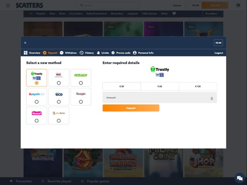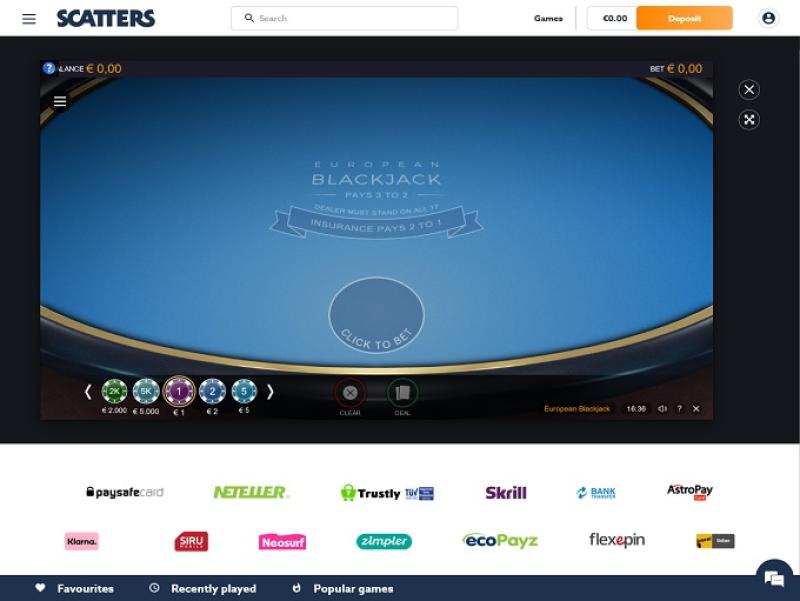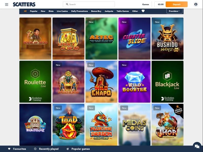 Scattersは Microgaming, Net Entertainment, BetSoft, 1x2gaming, Big Time Gaming, Evolution Gaming, Ezugi, Genesis Gaming, Habanero Systems, Novomatic, Play'n GO, playson, Quickspin, Relax Gaming, Thunderkick, Vivo Gaming, Endorphina, Betgames, PlayPearls, Pragmatic Play, Nolimit City, Felt Gaming, Red Tiger Gaming, Spinomenal, Felix Gaming, Fugaso, Fantasma Games, Kalamba, Revolver Gaming, Platipus Gaming, Skywind, Spinmatic, Spadegaming, Northern Lights Gaming, Fazi, Evoplay, Stormcraft Studios, Switch Studios, OneTouch, Pocket Games Soft, Triple PG, All41 Studios, Mascot Gaming, Gameburger Studios, Pulse 8 Studios, Slot Factory, Neon Valley Studios, Golden Rock Studios, Swintt, Woohoo Games, SpinPlay Games, Qora Games, SmartSoft Gaming, GONG Gaming, On Air Entertainment, Buck Stakes Entertainment, Caleta Gaming, Games Global, Reevo, 2by2 Gaming, Blueprint Gaming, Merkur Gaming, Tom Horn Gaming, Mr Slotty, Reel Time Gaming, BF Games, betiXon, Iron Dog Studio, Old Skool Studios, Slingshot Studios, AvatarUX, Crazy Tooth Studio, ReelPlay, Alchemy Gaming, BB Games, Snowborn Games, Hacksaw Gaming, Max Win Gaming, Gold Coin Studios, Gamzix, Half Pixel Studios, Peter And Sons, Eurostar Studios, Aurum Signature Studios, Lucksome Gaming, Area Vegas, Bombay Live, Leap Gaming, Kiron, 3 Oaks Gaming, Wishbone Games, Spribe, Circular Arrow, Print Studios, HammerTime Games, INO Games, Nailed It! Games, Neko Games, Reel Kingdom, Oros Gaming and PlayAceによって運営されており、カジノのゲームはインターネットブラウザから直接読み込まれるウェブベースのプラットフォームで提供されています。サイトは見栄えがよく、操作も簡単です。モバイルサポートも搭載されているため、スマートフォンやタブレットからギャンブルをお楽しみいただけます。