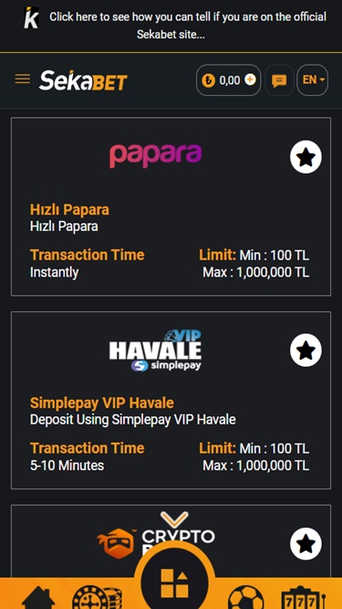 での銀行オプション Sekabet Casino