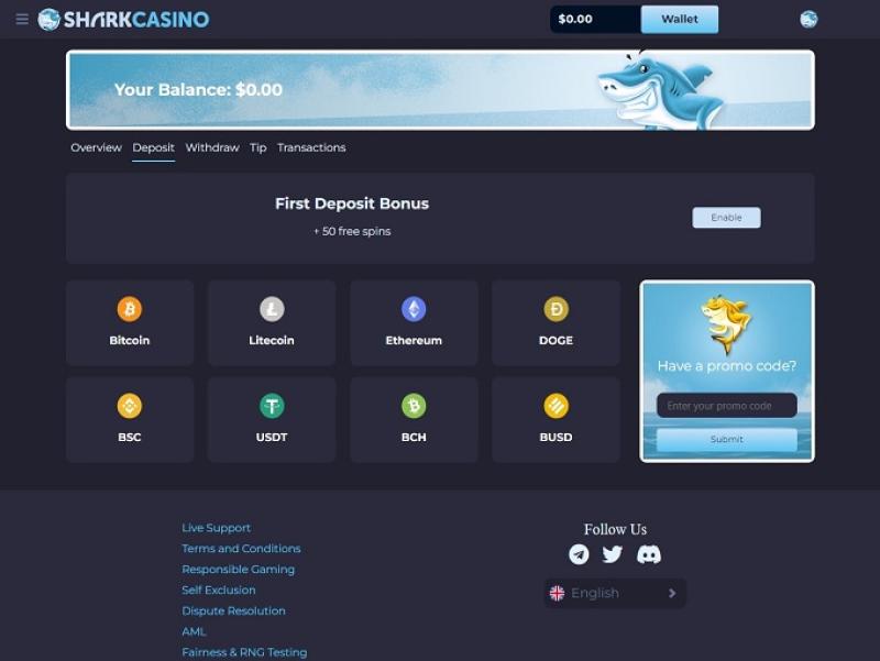 Shark Casino は暗号通貨専用のオンライン カジノです。このゲーム スペースでは、プレイヤーは一定額以下の資金を即時に処理して、さまざまな人気の暗号通貨で入金や出金を行うことができます。