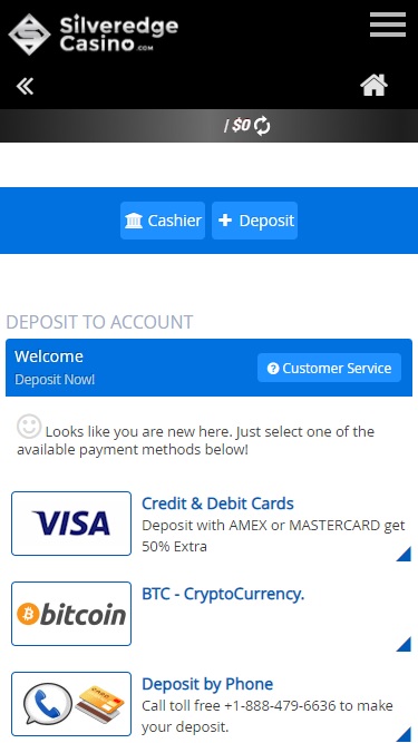Silveredge Casinoは BetSoft, Rival, Saucify and Dragon Gamingを採用しており、この開発元によるゲームを豊富に取り揃えています。デスクトップゲームに加え、スマートフォンやタブレットでプレイできるモバイルゲームもサポートしています。