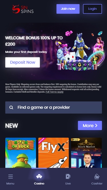 Sin Spins Casinoのレビュー
