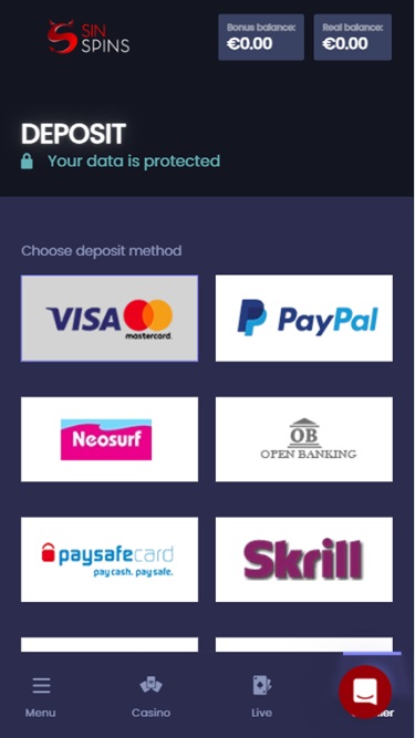 Sin Spins Casinoは Microgaming, Net Entertainment, Playtech, 1x2gaming, Barcrest, Big Time Gaming, ELK Studios, Evolution Gaming, EYECON, lightningboxgames, Novomatic, Play'n GO, Rabcat, Thunderkick, Wazdan, Nolimit City, Red Tiger Gaming, Spinomenal, SYNOT Games, Skywind, Triple Edge Studios, Northern Lights Gaming, Stormcraft Studios, Switch Studios, All41 Studios, Gluck Games, Gameburger Studios, Pulse 8 Studios, Slot Factory, Neon Valley Studios, Shuffle Master, SpinPlay Games, Real Dealer Studios, GONG Gaming, On Air Entertainment, Buck Stakes Entertainment, Games Global, Blueprint Gaming, Greentube, Tom Horn Gaming, WMS, Inspired Gaming, SG Interactive, Red7Mobile, CORE Gaming, Scientific Games, Reel Time Gaming, Iron Dog Studio, Old Skool Studios, Foxium, Betdigital, Just For The Win, PearFiction Studios, Wild Streak Gaming, Slingshot Studios, Fortune Factory Studios, Gamevy, Crazy Tooth Studio, Alchemy Gaming, Black Pudding Games, Snowborn Games, Hacksaw Gaming, Gold Coin Studios, Half Pixel Studios, Aurum Signature Studios, Lucksome Gaming, Area Vegas, Wishbone Games, Circular Arrow, HammerTime Games, INO Games, Nailed It! Games, Neko Games, Reel Kingdom, Oros Gaming and Light & Wonderを採用しており、ゲームはウェブベースのインスタントプレイプラットフォームを通じて提供されます。ユーザーは、このウェブベースのインスタントプレイプラットフォームを通じて登録、入金、そしてゲームをプレイできます。また、モバイルプレイにも対応しており、スマートフォンやタブレットからプレイできます。Blackjack