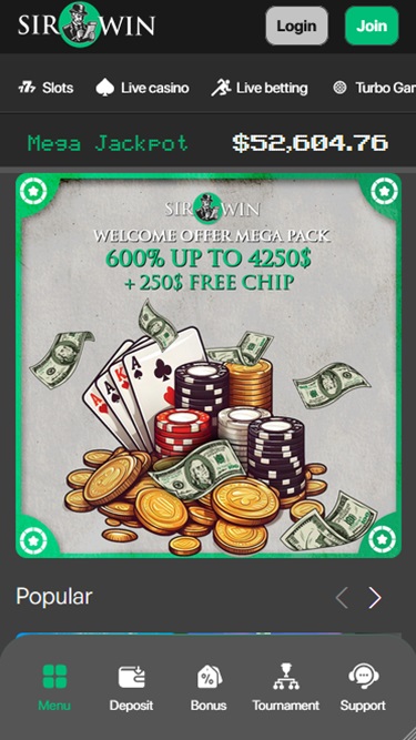 ブランドのターゲット顧客だけでなく、海外のプレイヤーも歓迎しています。海外にお住まいの方も、ぜひご期待ください!SirWinは素晴らしいスポーツイベントと一流のカジノゲームを提供しており、一見魅力的で魅力的に見えます。