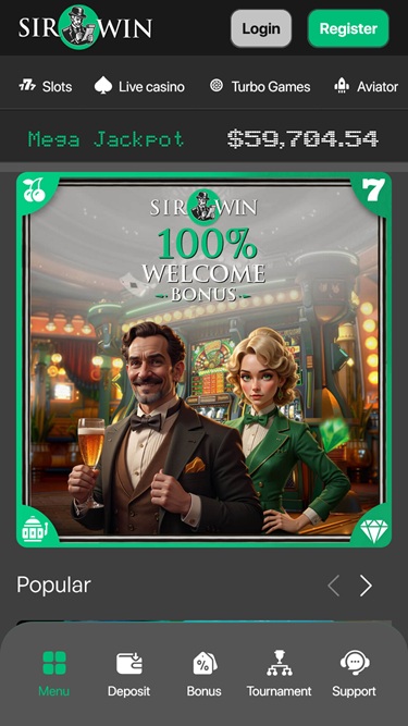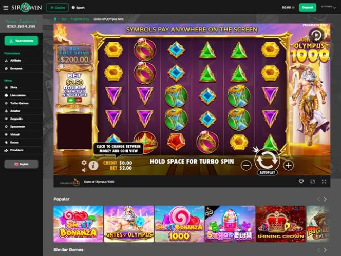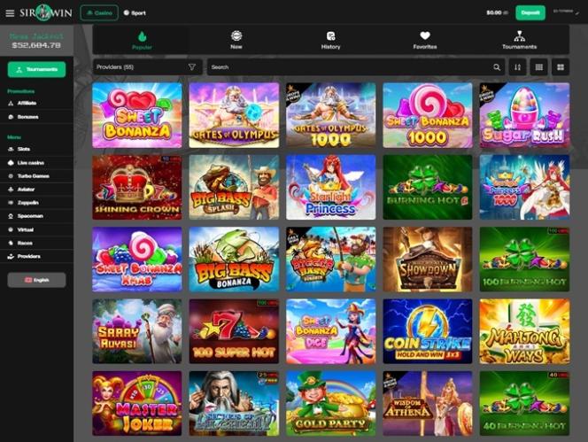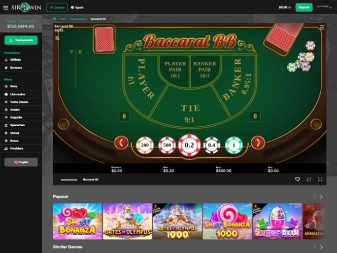 カジノの独創的なグラフィックソリューションと、お金にインスパイアされたカラーパターンが、心地よいギャンブルの雰囲気を醸し出しています。細部に至るまでシャープで整然としており、全体的に見てすべてがよく整理されているという印象です。登録は簡単で、SirWin Casinoではお気に入りのギャンブルコンテンツを見つけるのにそれほど時間はかかりません。特に、Aviator、Spaceman、Zeppelin、Pilot、Goal、Plinko、Hilo、Sultan's Gift、Drunk Santa、The Mystery Of Faberge、Cash Galaxy、Dice、High Low、Vortex、Ball & Ball、Lucky Numbers X20、Mini Roulette、Lucky Numbers X12などの注目タイトルをプレイしたい場合、すぐに見つけることができます。