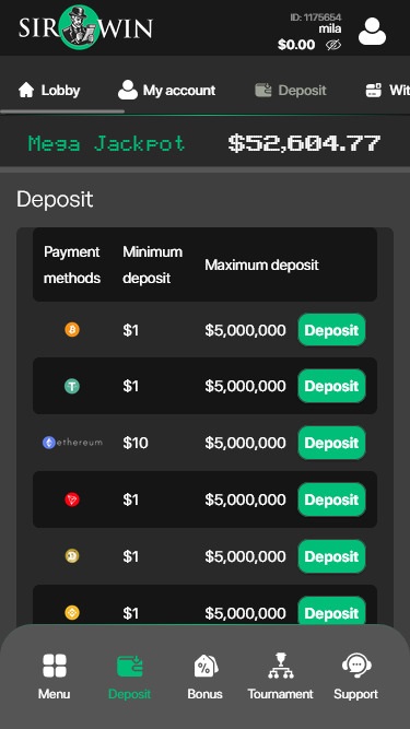 ウェブサイトはレスポンシブ対応で、外出先でもカジノゲームをプレイできるよう最適化されています。画面サイズを問わず、モバイルデバイスからすべてのコンテンツにアクセスできます。モバイルギャンブルでもパソコンでのゲームでも、安定したインターネット接続があればゲームの読み込みが速くなります。どちらの場合でも、素晴らしいゲーム体験をお楽しみいただけます。SirWinのサービスについてもっと詳しく知るために、ロビーを一緒に探検しましょう!