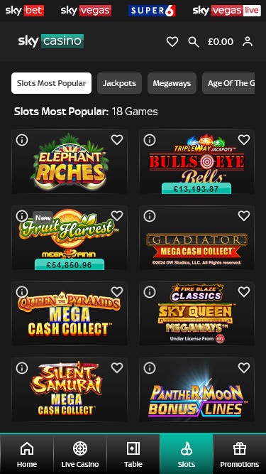 Sky Casinoは Playtech, Ash Gaming and Rarestone Gamingを採用しており、カジノゲームはウェブベースのプラットフォームを通じて提供されています。モバイルサイトも利用可能で、外出先でもプレイできます。Blackjack
