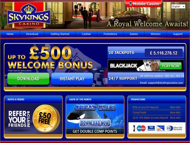 Sky Kingsは Playtechを採用しており、130種類以上のゲームをプレイヤーに提供しています。カジノでは、ダウンロード版のソフトウェアと、ウェブブラウザで直接プレイできるインスタントプレイ版の両方を提供しています。Blackjack
