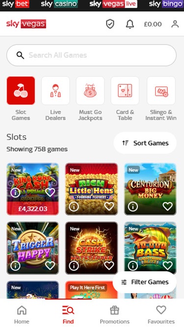Sky Vegasカジノは Playtech, 1x2gaming, Barcrest, Big Time Gaming, ELK Studios, Evolution Gaming, iSoftBet, lightningboxgames, Novomatic, Thunderkick, Pragmatic Play, Red Tiger Gaming, IGT, Fantasma Games, Bally Technologies, Blueprint Gaming, Cozy Games, Greentube, Leander Games, Merkur Gaming, Push Gaming, WMS, Inspired Gaming, Gaming Realms, Cayetano, SG Interactive, Red7Mobile, CORE Gaming, Scientific Games, Reel Time Gaming, Authentic Gaming, Iron Dog Studio, Betdigital, Wild Streak Gaming, 4ThePlayer, AvatarUX, ReelPlay, Bang Bang Games, Spribe, Reel Kingdom and Light & Wonderを採用しており、ゲームはインスタントプレイウェブプラットフォームを介して提供されます。これにより、ウェブブラウザから直接カジノゲームをプレイできます。また、プレイヤーが利用できるモバイルサイトもあり、スマートフォンやタブレットからカジノを利用できます。Blackjack