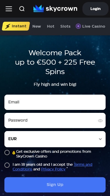 - SkyCrown Casinoは、年齢確認をいつでも要求し、本人確認を行う権利を有します。オペレーターは、アカウント登録時に提供された電話番号に電話をかける場合があります。本人確認手続き中は、出金処理はできません。