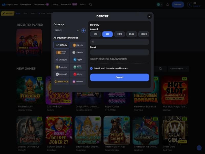 暗号通貨による支払いオプションを好むプレイヤーにとって、SkyCrown ではさまざまな一般的な暗号通貨での取引が可能であることは喜ばしいことでしょう。
