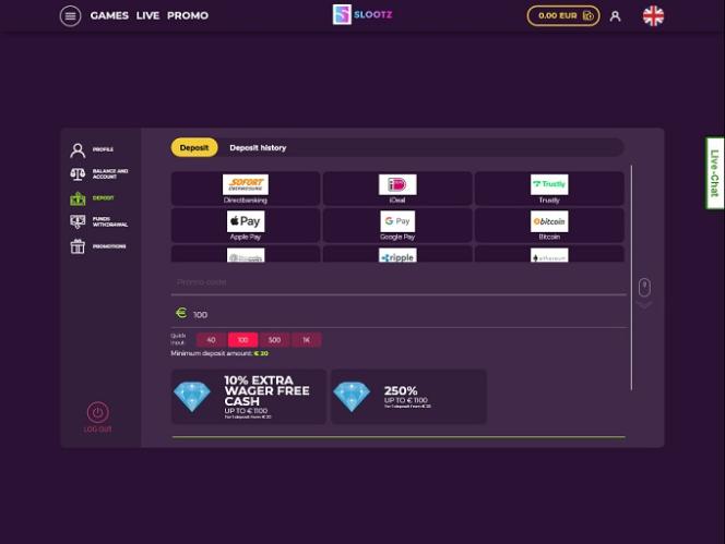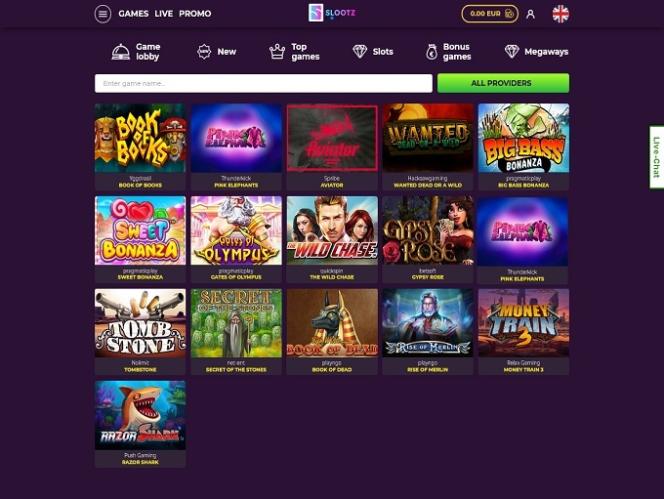 Slootz はライブディーラーに優しいブランドで、次のような魅力的なタイトルを扱っています: Video Blackjack、Imperial Quest、Roleta Da Sorte、Blackjack Da Sorte、Dragon Tiger Da Sorte、Three Card Poker、Instant Lucky 7、Extra Chili Epic Spins、Grand Korean Blackjack、Bonsai Baccarat A、Bonsai Baccarat B、Bonsai Baccarat C、Korean Speed Baccarat F、Speed Baccarat in Spanish、Football Studio in Spanish、Funky TimeMega Ball in Spanish 100x、Spanish Lightning Roulette、Spanish Speed Roulette、Prive Lounge Blackjack 1、Spanish Roulette Live、Prive Lounge Blackjack 2、Prive Lounge Blackjack 3、Roulette Galaxy 1、Prive Lounge Blackjack 4、French Roulette、Las Vegas Blackjack、Brazilian Roulette Live、English Casino Hold'em、Teen Patti など。