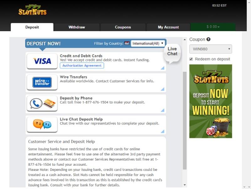 Slot Nuts は Real Time Gamingによって提供されており、プレイヤーはダウンロード可能なソフトウェアと Web ベースのプラットフォームを介してカジノにアクセスできます。Baccarat