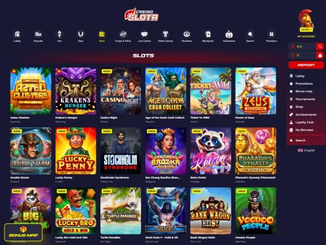 あらゆることを考慮して、Slota Casinoはユーザーに多くのカジノゲームを提供しており、様々なゲームをお楽しみいただけます。ソフトウェアプロバイダーの膨大なカタログにより、皆様のお好みにぴったりのゲームが何百種類も見つかると確信しています。