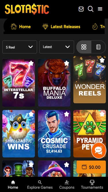 Slotasticのゲームライブラリの大部分はスロットで、クラシックな3リールスロットから3Dグラフィックを搭載した複雑なビデオスロットまで、あらゆるゲームが揃っています。また、数百ドルから100万ドルを超えるプログレッシブジャックポットも提供しています。