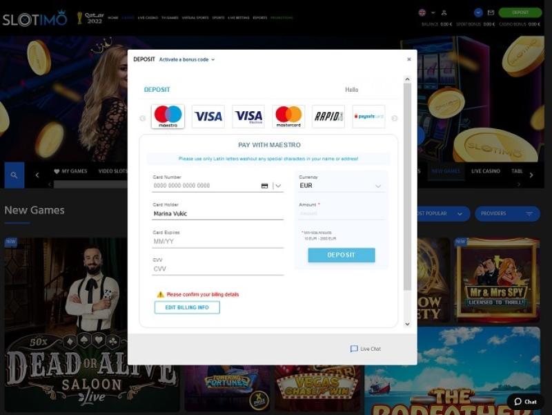 Slotimo カジノにはさまざまな一般的な支払い方法が用意されており、プレイヤーは魅力的な暗号通貨オプションを選択したり、デビットカードやクレジットカード、直接送金、電子ウォレットなどの従来のオンライン支払いを選択したりすることができます。