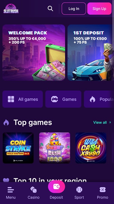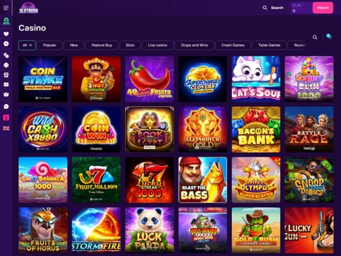 SlotRushは、カナダ、ドイツ、フィンランド、オーストリア、ニュージーランドのプレイヤーを対象としたオンラインカジノおよびスポーツベッティングウェブサイトです。このレビューを執筆時点では、このブランドはギャンブルライセンスを取得せずに運営されていました。