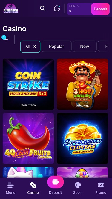 すべてのカジノコンテンツは、人気、ライブカジノ、ジャックポット、フィーチャーバイ、テーブルゲーム、クラッシュゲーム、VIP、その他のゲームなどのカテゴリーにきちんと整理されています。