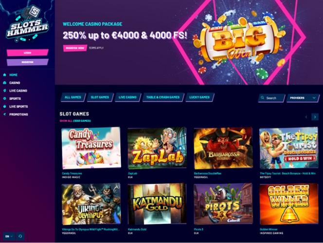 当然のことながら、Slots Hammerも同様です。プレイヤーは豊富なカジノゲームとソフトウェアプロバイダーのセレクションにアクセスできます。このプラットフォームは60以上のユニークなゲームスタジオによって運営されており、そのほとんどは市場で最高の評価を得ています。
