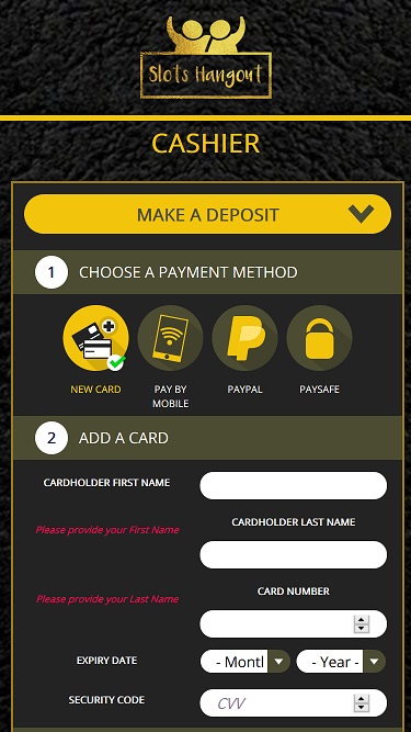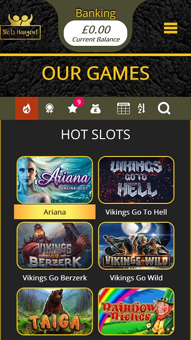 Slots Hangout Casinoは Microgaming, Net Entertainment, 1x2gaming, Barcrest, Big Time Gaming, ELK Studios, EYECON, lightningboxgames, playson, Rabcat, Saucify, Yggdrasil, Pragmatic Play, Red Tiger Gaming, Fantasma Games, Triple Edge Studios, Stormcraft Studios, Electric Elephant Games, Bulletproof Games, All41 Studios, Gluck Games, Gameburger Studios, Pulse 8 Studios, Neon Valley Studios, Shuffle Master, Games Global, 2by2 Gaming, Ainsworth, Bally Technologies, Blueprint Gaming, Leander Games, Merkur Gaming, NextGen, Tom Horn Gaming, WMS, Inspired Gaming, Genii, SG Interactive, SUNfox Games, Red7Mobile, CORE Gaming, Reel Time Gaming, Iron Dog Studio, Just For The Win, Slingshot Studios, Fortune Factory Studios, 4ThePlayer, Gamevy, Crazy Tooth Studio, High 5 Games, Pirates Gold Studios and BB Gamesを採用しており、カジノゲームはインターネットブラウザで読み込まれるウェブベースのプラットフォームを通じて提供されます。また、モバイルプレイにも対応しているため、スマートフォンやタブレットでもプレイできます。